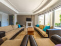 The stylish and spacious open-plan living room has a 3-seater sofa, 2 seater sofa, 2 armchairs, dining table, attractive fireplace, satellite TV, DVD, and patio doors to the pool terrace, affording fabulous views of the bay.