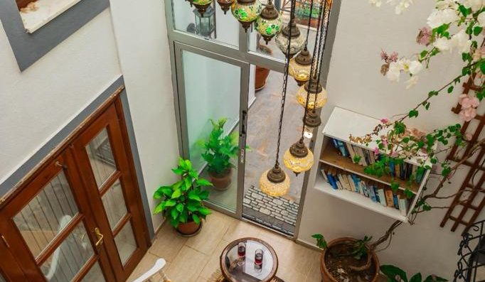 In the spacious garden, it has a green botanical garden with avocado, lemon, pomegranite, orange and vine (grape) fruit trees and flower, ivy and plant varieties.