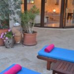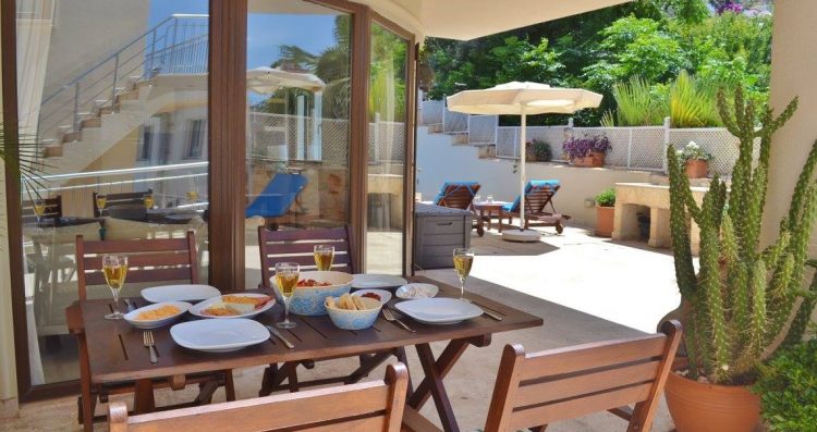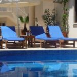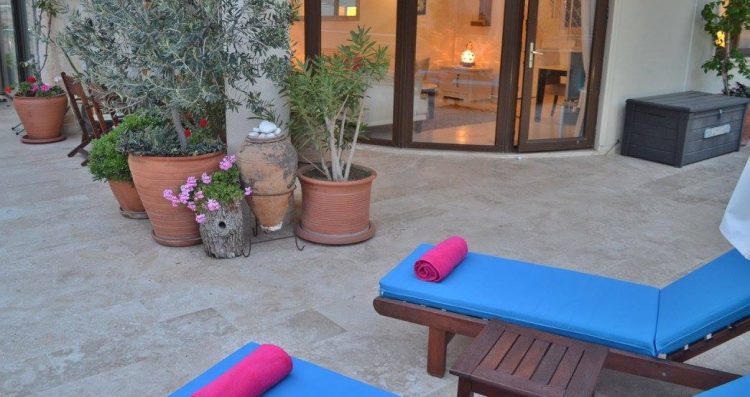 The property has a large sunbathing terrace with sea views and a variety of fragrant, Mediterranean plants, trees and flowers. There are sunbeds, cushions, parasols and bean bags. The shared ‘L’ shaped pool wraps around the property and is accessed by mosaic Roman steps.There is also an outdoor shower by the pool. Directly outside the lounge is a private terrace with dining table and chairs in an art-themed garden. A wonderful place to simply relax and sunbathe, or to enjoy some al-fresco drinks and dining. Both bedrooms have private furnished terraces with sea views. A peaceful lane with parking runs along the front of the property, whilst the rear of the property leads you directly into town at the taxi rank roundabout. Guests of the Pearl are also able to use the impressive pool and facilities at the adjacent Dream Hotel.