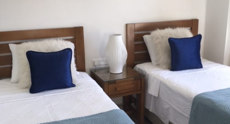 Bedroom 2 – 2 Single Beds, En-suite leading to furnished terrace with sea views