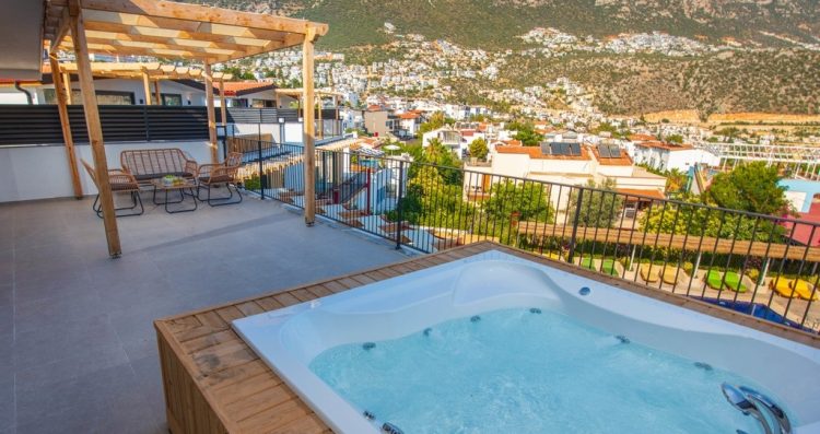 The large pool and terrace provide plenty of comfortable sunbeds, and shady areas, perfect for relaxing and soaking up the Kalkan sun.