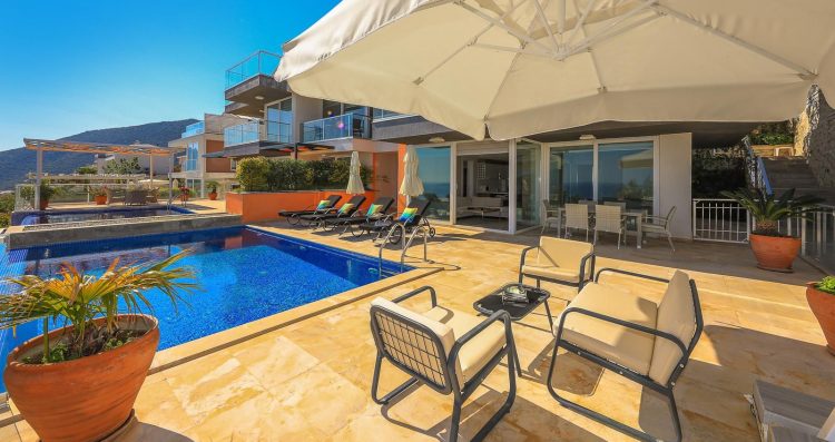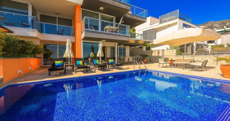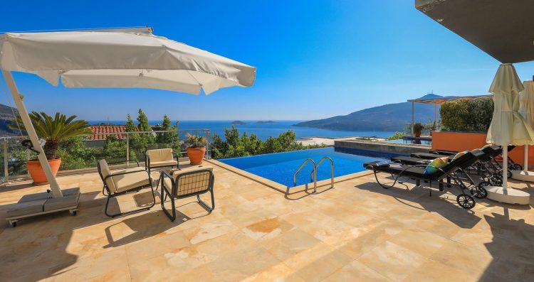 Palmy Apartment is a two bedroom property with a private pool overlooking the Kalamar Bay and surrounding islands. Located within the famous Azure Heights, the apartment offers amazing sea, mountain and island views that guests would fall in love with instantly. Located in the ground floor of the building, the Palmy Apartment has a very decent sized private pool with infinity-edge and plenty of outdoor space and sitting area around it to enjoy fabulous Kalkan views. The property is elegantly and modernly designed with a fully equipped kitchen, a living room, and two bedrooms. The property has excellent WIFI connection, Netflix, Amazon Prime and Disney+ subscriptions, security cameras and alarm system as safety measures.