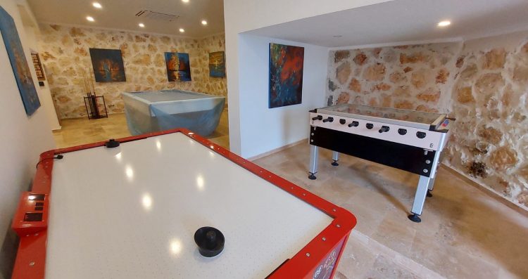 Just added a 60 square metre games room created on this level (accessed via a doorway next to the pool). Featuring a pool table, table-tennis, table football, electronic darts, air-hockey, a retro arcade games console and a minibar.