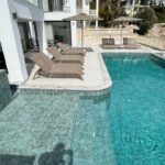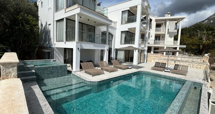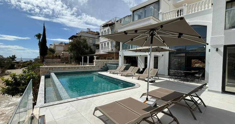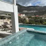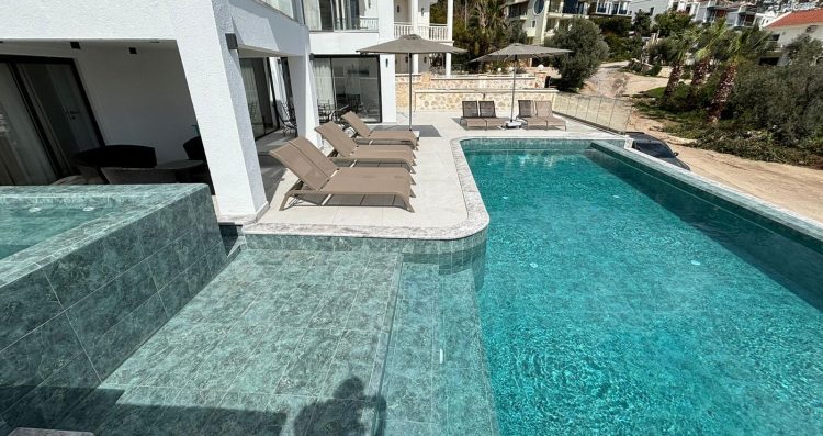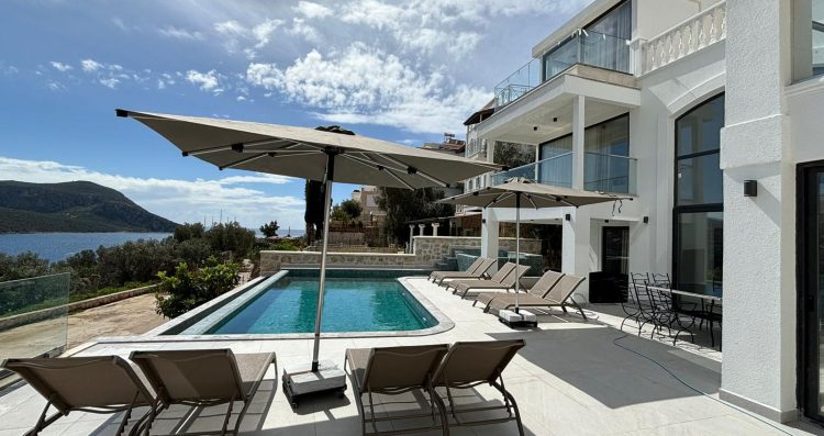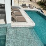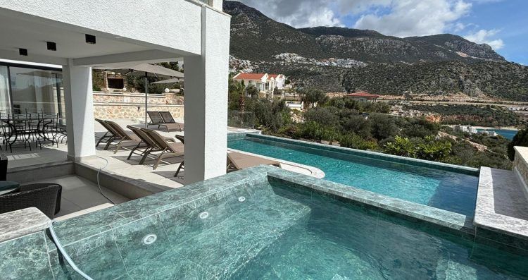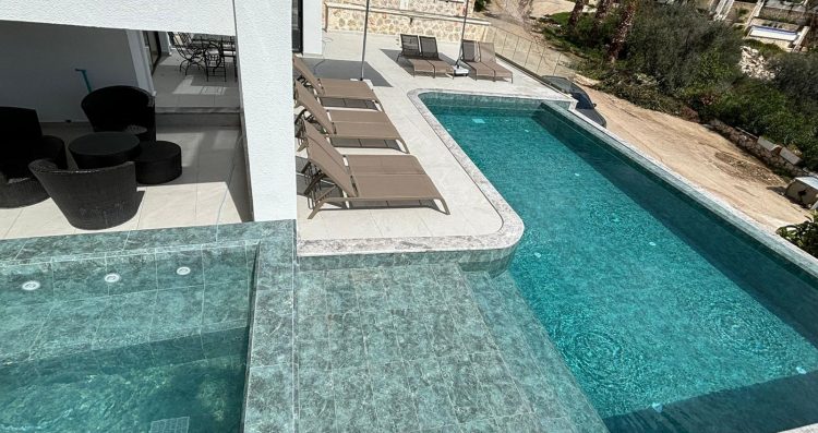 The villa has an attractively-shaped pool, plus a Jacuzzi – the terrace is furnished with 10 sunloungers and 5 parasols.
