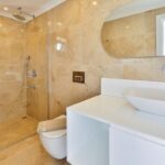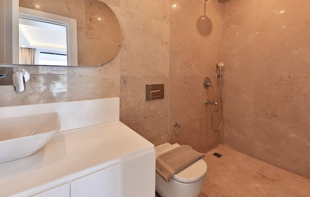 A twin bedroom can also be found on this level – this bedroom has access to the pool terrace via sliding doors and it also has an en-suite shower room