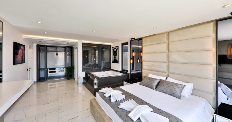 Villa Enhave, whose construction was completed in 2021 has been built and designed with our valued guests in mind. Located in the Kömürlük area of Kalkan our villa consists of 5 bedrooms, an open-plan kitchen lounge as well as a Turkish bath and sauna room. The pool terrace area has been designed thoughtfully to incorporate an al-fresco dining area, sunbathing area as well as a more relaxed style seating area, ideal for afternoon tea/coffee. The spacious lounge is an ideal space for all members of the family to get together and enjoy eachothers company. Whilst the Master Bedroom suite offers relaxation and luxury with its very own jacuzzi and en-suite bathroom.