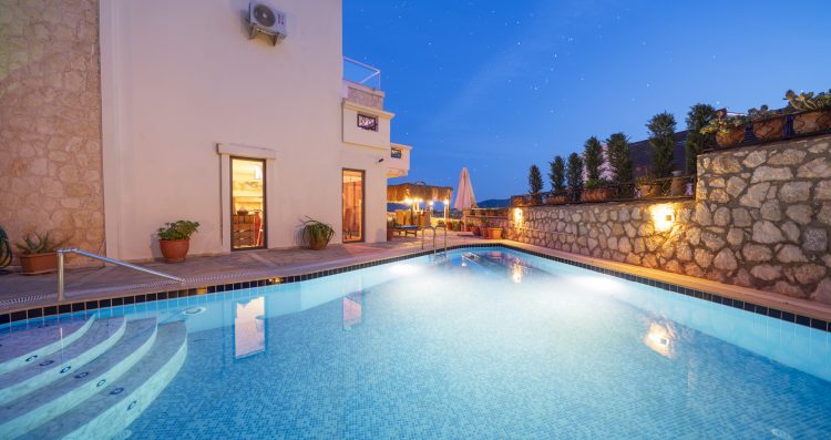 The large roof terrace gives fantastic panoramic views of the sea (Kalkan Bay and Kalamar) and mountains and is a great place to have drinks under the stars.The villa has full air conditioning. The terrace and private pool benefit from sun throughout the day and provide the perfect setting for poolside fun, relaxation and a shaded area for alfresco dining.