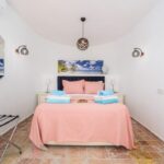 This attic double bedroom has a very special woodwork ceiling decoration.